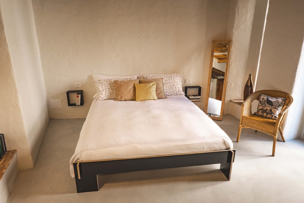 Defined by its bold, industrial-inspired silhouette, this platform bed features a sleek black frame with exposed plywood edges. The interlocking joint design eliminates the need for complex hardware, offering a sturdy, low-profile base that anchors any modern or rustic space with effortless, minimalist style.